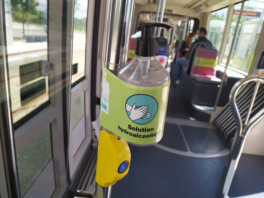 Trams in Brest have been fitted out with gel and also have had signs put on half of their seats to help enforce social distancing. You have to wear a face covering while on public transport and I have only seen one person not respect that. It was a cool looking dude in his late teens. An elderly looking woman went up to him and gave him what for - I’ve never seen anyone look so sheepish and apologise so much in my entire life! He won’t forget again!