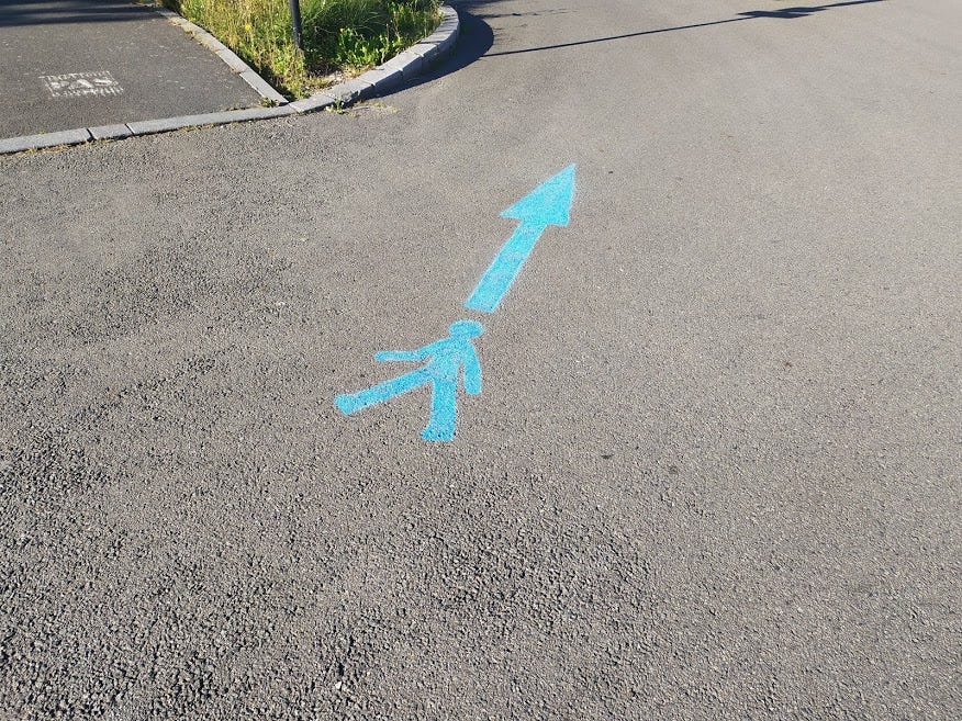 …they are markers to ensure that people who are going to the local market (which is held in those streets) are all walking in the same direction, so they can observe social distancing and avoid bumping in to each other!